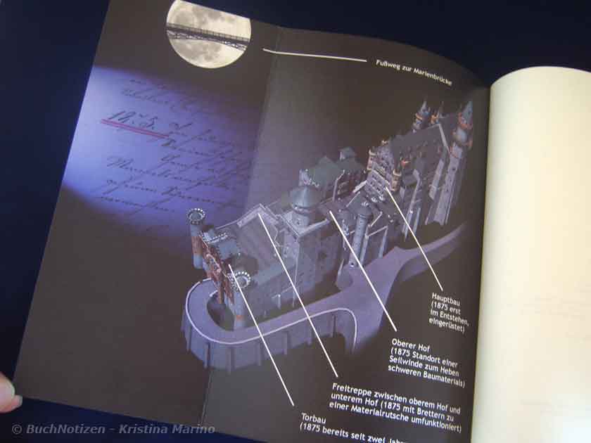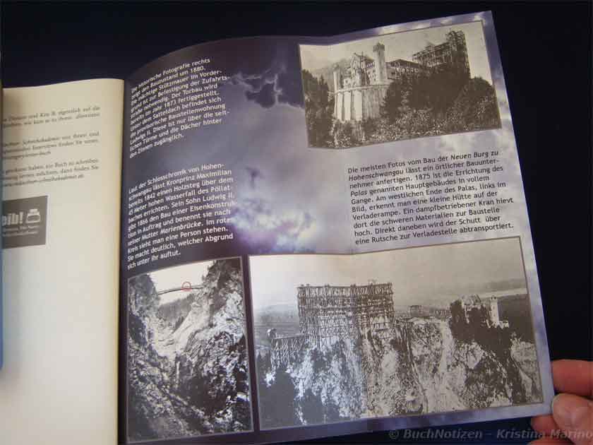 Bilder vom Schloss Neuschwanstein kennt (fast) jeder. Die Bilder von den Bauarbeiten sind dagegen nicht so bekannt. Die Fotos und die Hintergrundinformation sind für das Verständnis des Neuschwanstein-Thrillers sehr hilfreich, genauso, wie das Personenverzeichnis am Anfang des Buchs.