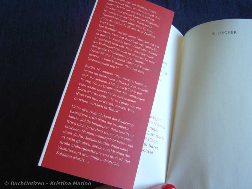 Ninas Rahmenhandlung ist für meinen Geschmack zu ausführlich ausgefallen. Die Abschnitte in der Gegenwart mit Nina sind in der Ich-Form geschrieben und nicht so spannend, wie die aus der Vergangenheit. Die historischen Abschnitte sind sehr fesselnd geschrieben. Besonders gut gefallen hat mir die Beschreibung des Lebens in Tunis und in Piccola Sicilia, das sehr lebendig und eindrucksvoll dargestellt wird. Diesen “tunesischen Blickwinkel” finde ich sehr interessant. Ich habe schon einige Bücher über den Zweiten Weltkrieg gelesen, aber noch nie aus dieser Perspektive.